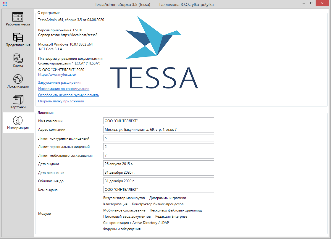 Импорт рабочего места - импорт рабочего места (через TessaAdmin или с помощью утилиты tadmin).