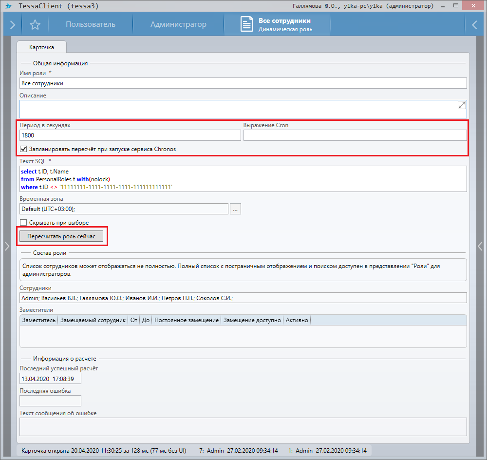 Запустите сервис Syntellect Chronos. Убедитесь, что в лог файле сервиса Chronos\log.txt нет ошибок. Если в нём есть ошибки по выполнению запросов для динамических ролей и метаролей, то вам надо переписать эти запросы под новую СУБД.