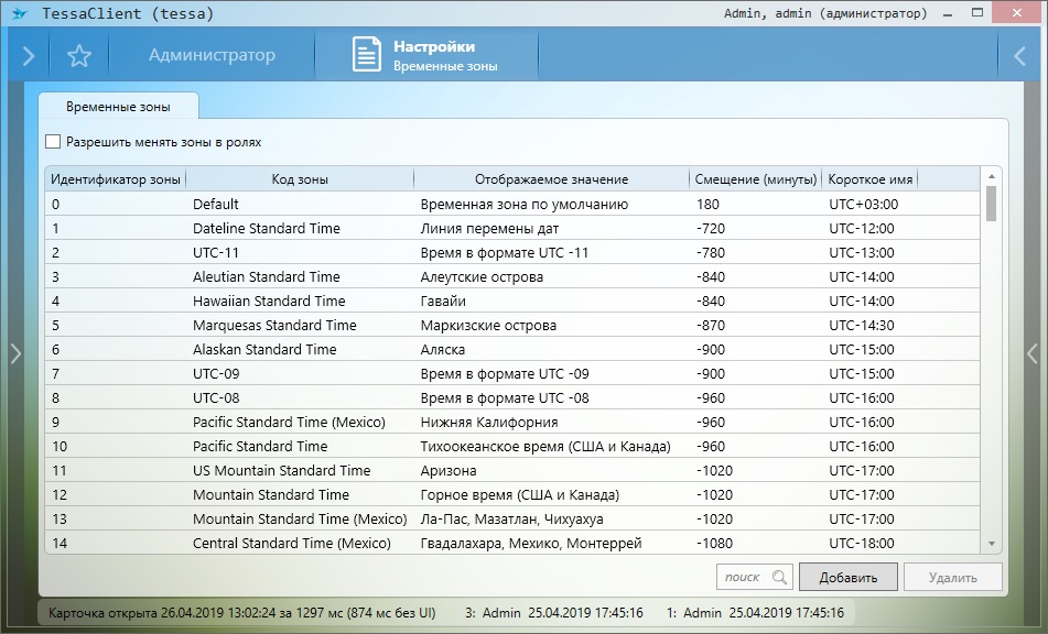 По умолчанию история действий фиксируется по всем типам карточек и всем изменениям в объектах приложения TessaAdmin. Отключить данную настройку для какого либо типа карточки можно в TessaAdmin, найдя нужную карточку и сняв флаг “Фиксировать действия” (более подробно описано в разделе Создание нового типа карточки).