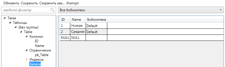 Далее мы можем выполнить перенос каких-либо объектов в данную библиотеку: таблицы, колонки, записи, функции и т.д.: