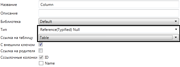 | Reference | Тип, доcтупный только комплексным колонкам | Сохраняются типы колонок таблицы, на которую ссылается | reference | Ссылка |