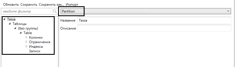 Раздел предназначен для просмотра и редактирования схемы данных.