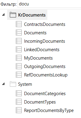 Список представлений находится в левой части раздела и содержит фильтр для поиска по названию: