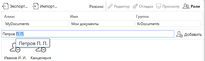На вкладке “Роли” представления можно указать роли, которые будут иметь доступ к данному представлению. Можно указывать любые роли, кроме контекстных. Если сотрудник не имеет доступа к представлению - он не увидит его в рабочем месте и не сможет с ним работать, где бы оно не использовалось - например, при выборе значения при помощи автодополнения.
