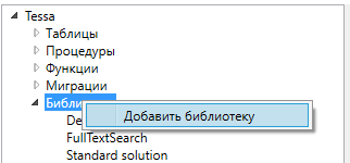 Первым делом создадим новую библиотеку, в которую будем добавлять новые таблицы. На узле Библиотеки с помощью контекстного меню добавим новую библиотеку.