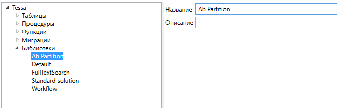 Добавится новая библиотека со стандартным именем Partition, выберем её и укажем новое имя - Ab Partition: