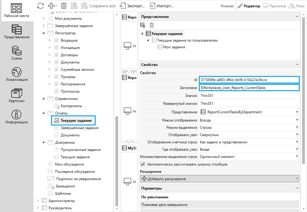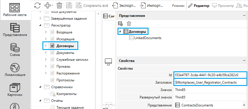 | Рабочие места | поле Id с префиксом Workplace: |