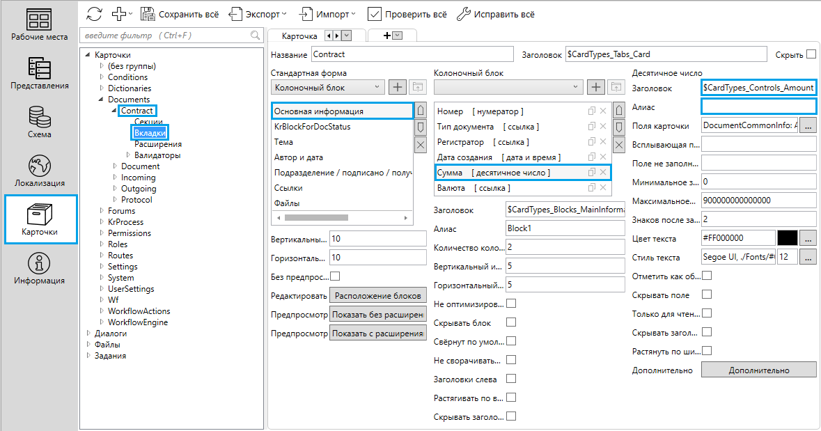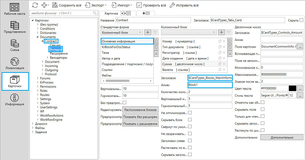 | Блок, элемент управления | поле Алиас |