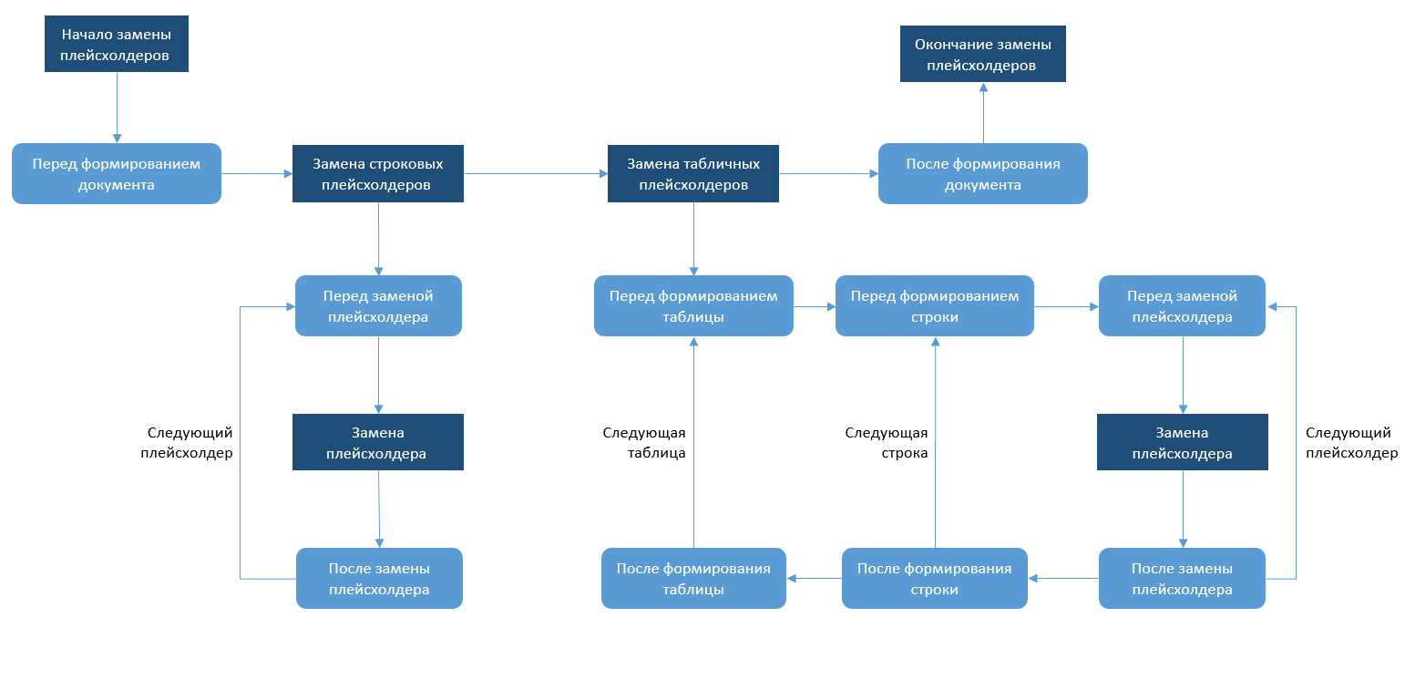 После замены плейсхолдера- вызывается после того, как произвелась замена плейсхолдера в документе. В данном сценарии можно произвести постобработку документа после замены плейсхолдера.