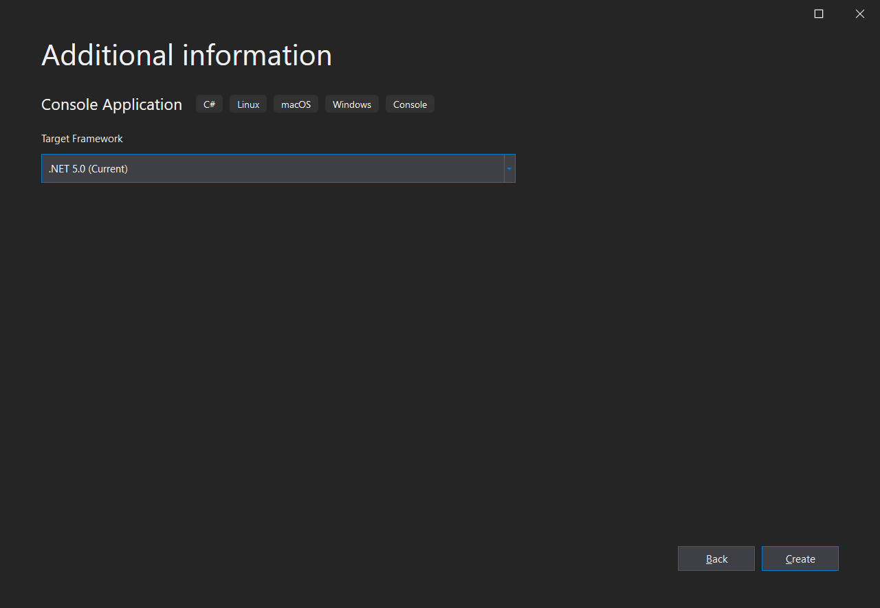 Убедитесь, что в свойствах созданного проекта указана платформа .NET 5.0.