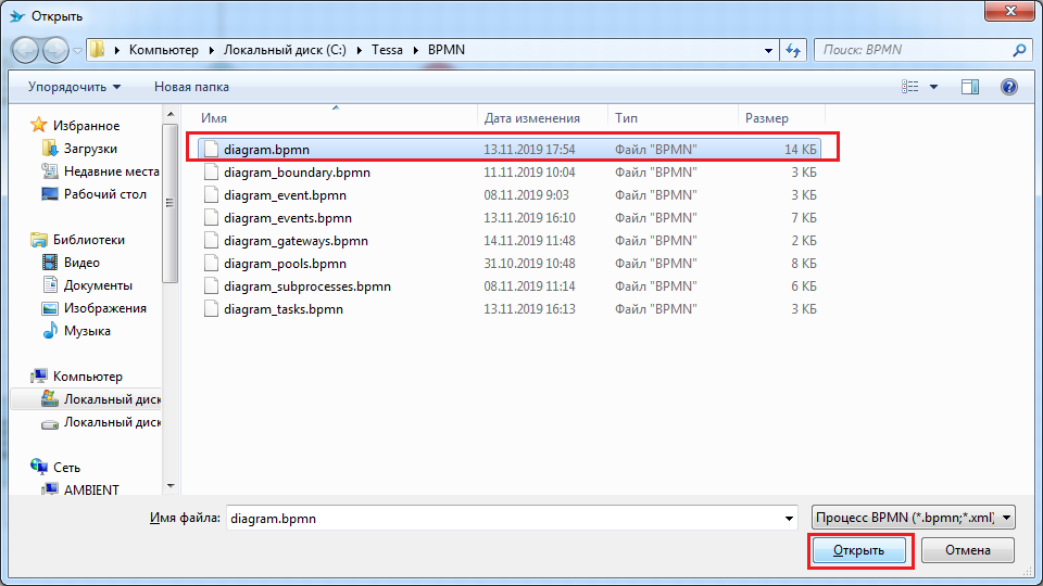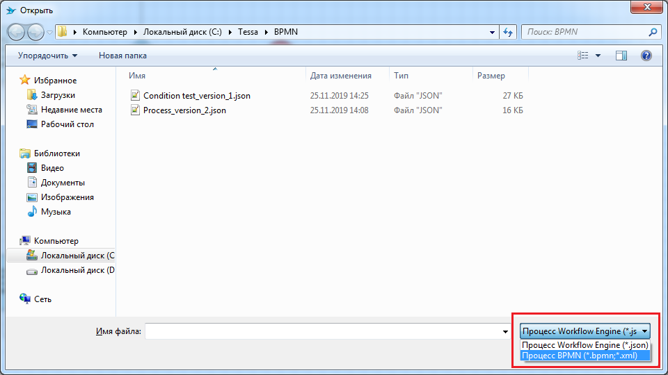 3. В открывшемся окне выбираем тип файла - Процесс BPMN.