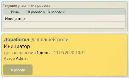 Роль - Автор документа. Мы хотим, чтобы задание на доработку отправлялось автору документа.
