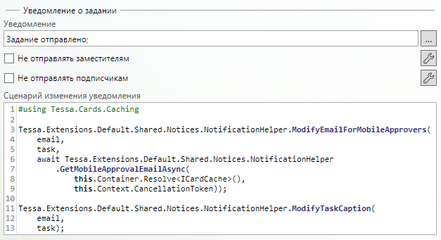 Настройка создания ссылок мобильного согласования в уведомлениях о задании.