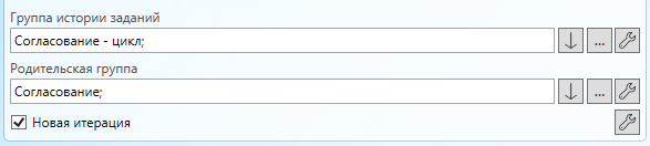 Для корректного формирования Истории заданий на первом цикле, надо перед любым действием, отправляющим задания, добавить действие “Управление историей”. Действие “Управление историей” достаточно добавить один раз в начале маршрута, что обеспечит создание группы истории заданий: Согласование → Согласование - цикл 1 (аналог этого действия в маршрутах - этап “Управление историей” из шаблона этапов “Новая итерация согласования”).