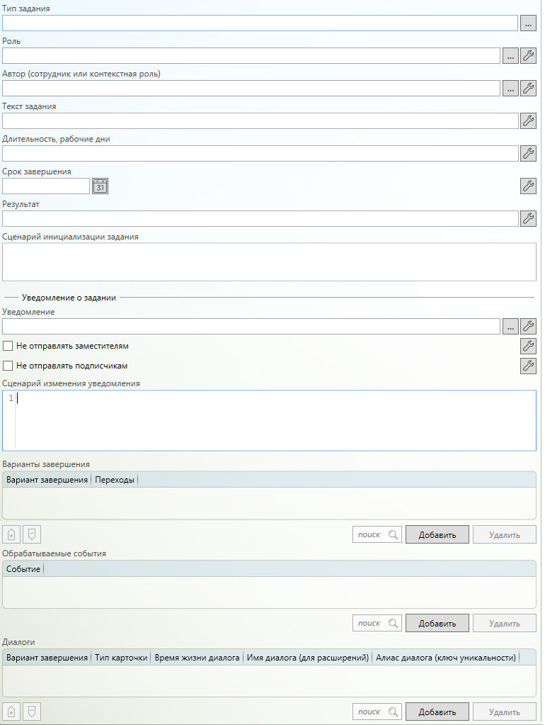 Тип задания - позволяет выбрать тип карточки задания, структуру которой мы хотим увидеть в редакторе параметров для выбора значения.