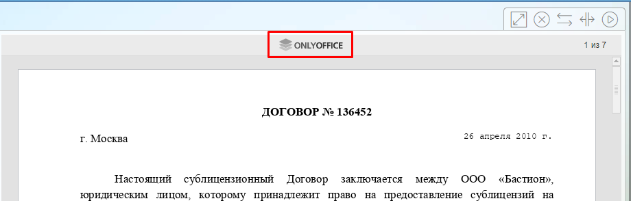 В Легком клиенте для редактирования, просмотра и предпросмотра документов также может использоваться Р7-Офис / OnlyOffice, если соответствующая настройка была активирована администратором системы. После ее активации в окне предпросмотра будет указано, что используется OnlyOffice: