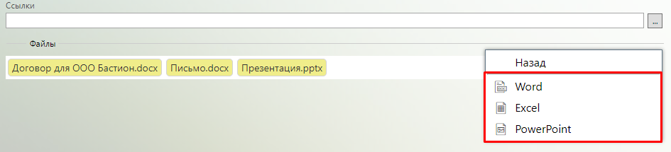Для работы с файлами в карточках системы существует список файлов.