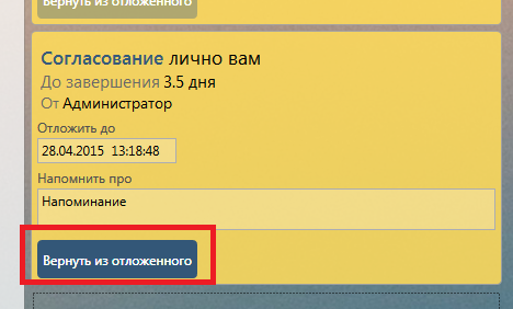 После выбора опции “Вернуть из отложенного” задание возвращается в работу.