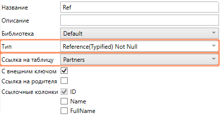 | Добавить ссылочную колонку | Добавить комплексную колонку | Колонки |