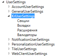 Для этого необходимо при помощи TessaAdmin создать тип карточки, например KrUserSettings: