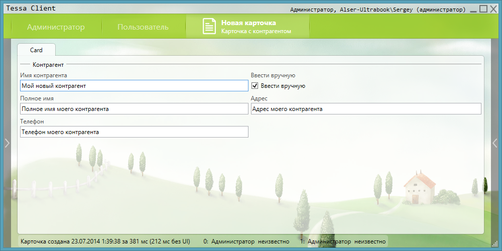 В любой момент пользователь может сохранить карточку. После загрузки все её поля и контролы корректно восстановятся.