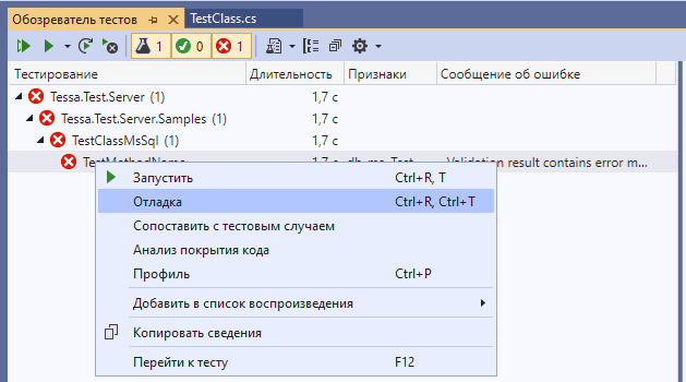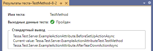 Результат выполнения теста доступен на странице обозревателя тестов по ссылке “Открыть дополнительные выходные данные для этого результата”: