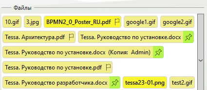 Для выбранных файлов в карточке средствами клиентского API можно добавить иконки, окрашенные в разные цвета, которые позволяют дополнительно различить файлы по произвольным признакам. Например, можно отметить иконками файлы с расширением PDF или файлы размером 100 Мб и более.