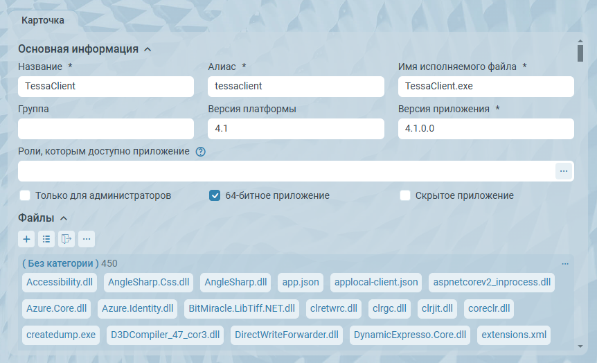 В карточке приложения добавлены файлы опубликованного приложения, а также отображается информация по данному приложению: