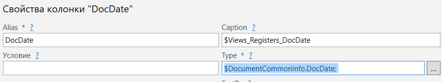 Тип колонки в конструкторе представлений: