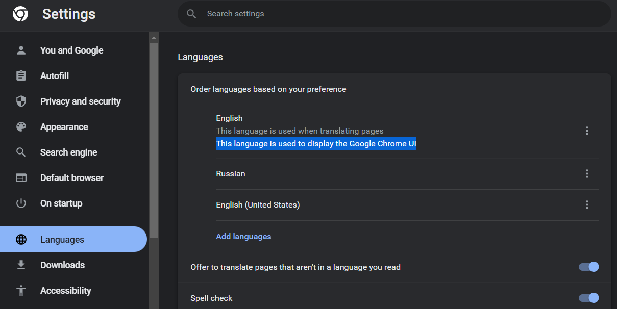 В web-клиенте используется язык интерфейса браузера.