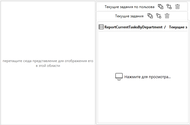 Для добавления представления в новую вкладку на рабочей области (или части рабочей области), необходимо перетащить мышью представление из представлений узла к уже добавленному представлению: