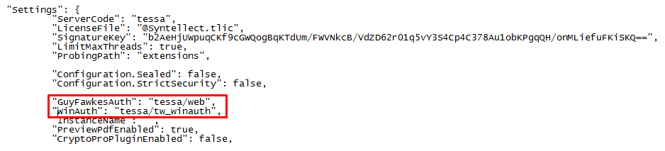 C:\inetpub\wwwroot\tessa) включить плагин:"CryptoProPluginEnabled": true, -