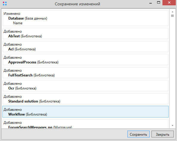 После нажатия кнопки Сохранить всё импортированные типы карточек будут сохранены. Операцию нужно повторить для папки Configuration\Types\Tasks, а также для папок Configuration\Types\Files и Configuration\Types\Dialogs из сборки.