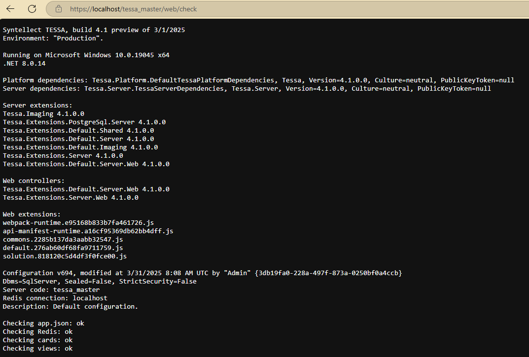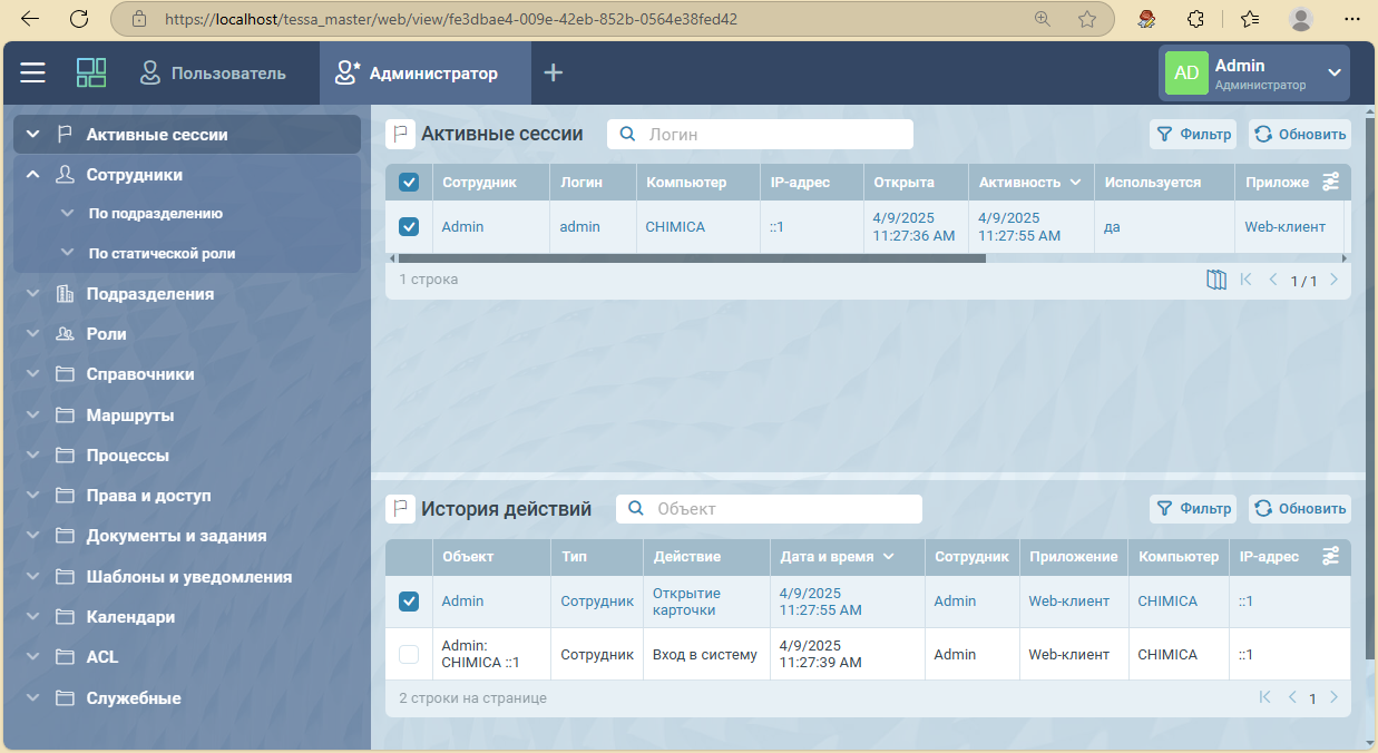Данных действий будет достаточно для успешного запуска TESSA. Однако рекомендуется также запустить Chronos (если он используется) и установить дополнительные сервисы, так как они влияют на некоторый функционал системы.