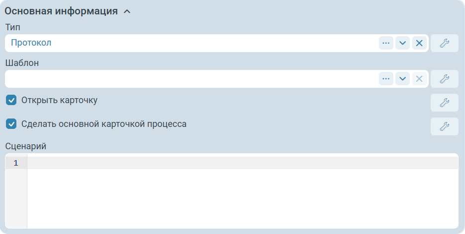 Тип карточки (значение из справочника Типы карточек) - тип карточки, который будет использован для диалога. Тип карточки определяет структуры данных и UI полей диалога. Доступен, если в настройке Тип формы диалога установлено значение