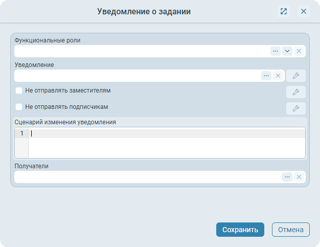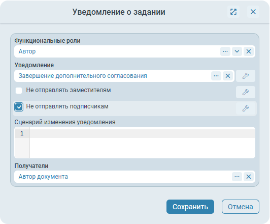 Получатели (список ролей) - список получателей уведомления (помимо тех, кто был рассчитан на основе указанной функциональной роли).