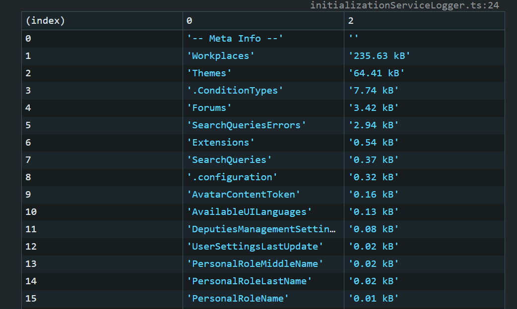 Для того чтобы оценить размеры передаваемой меты на клиент, можно воспользоваться специальным флажком в настройках InitializationServiceSettings.