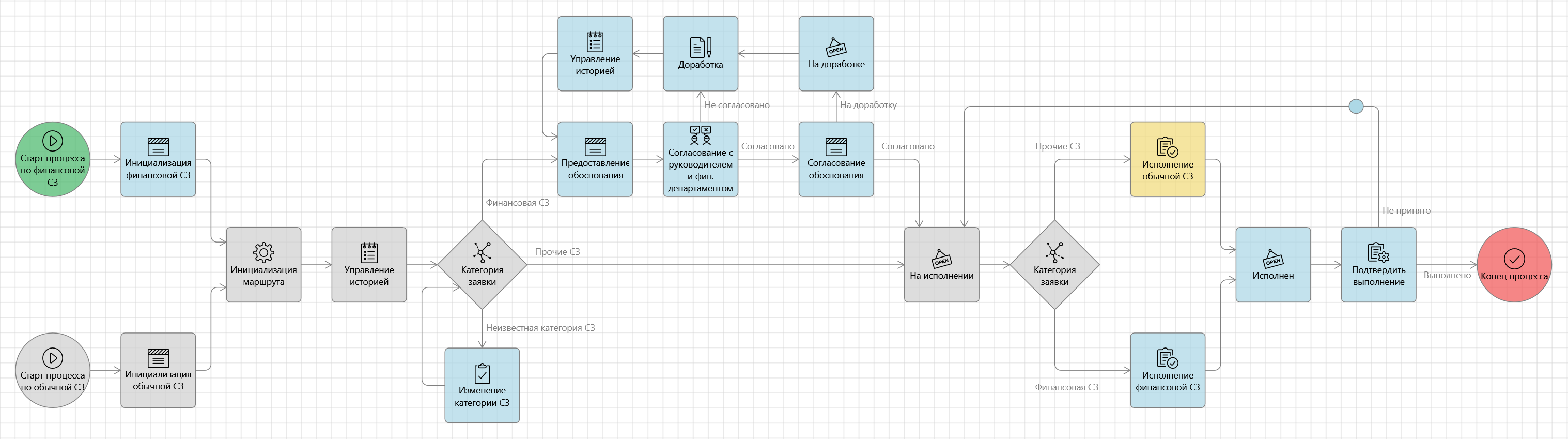 | Старт процесса по финансовой СЗ, Старт процесса по обычной СЗ | Старт процесса |