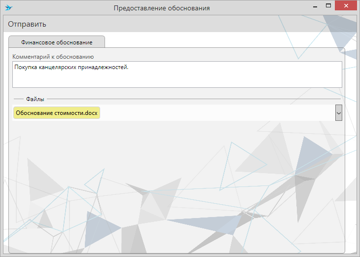 После отправки на согласование будет предложено предоставить финансовое обоснование или ввести комментарий.