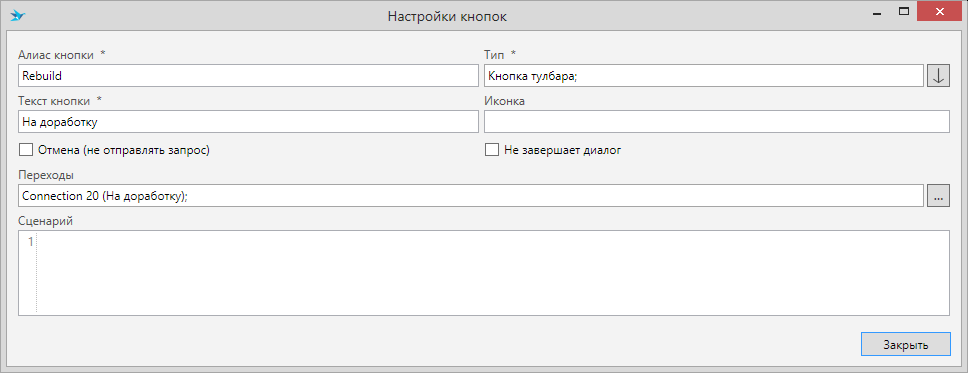 Добавьте кнопку бизнес-процесса “Обычная СЗ” и настройте её как показано на рисунке:
