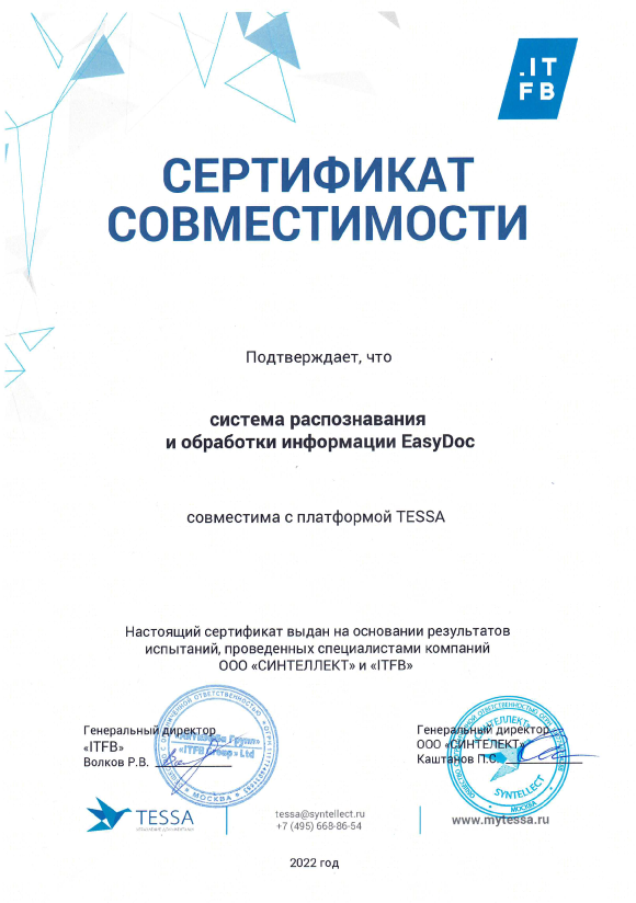 МоскваСайт: itfbgroup.ru/easydocСертификат совместимости