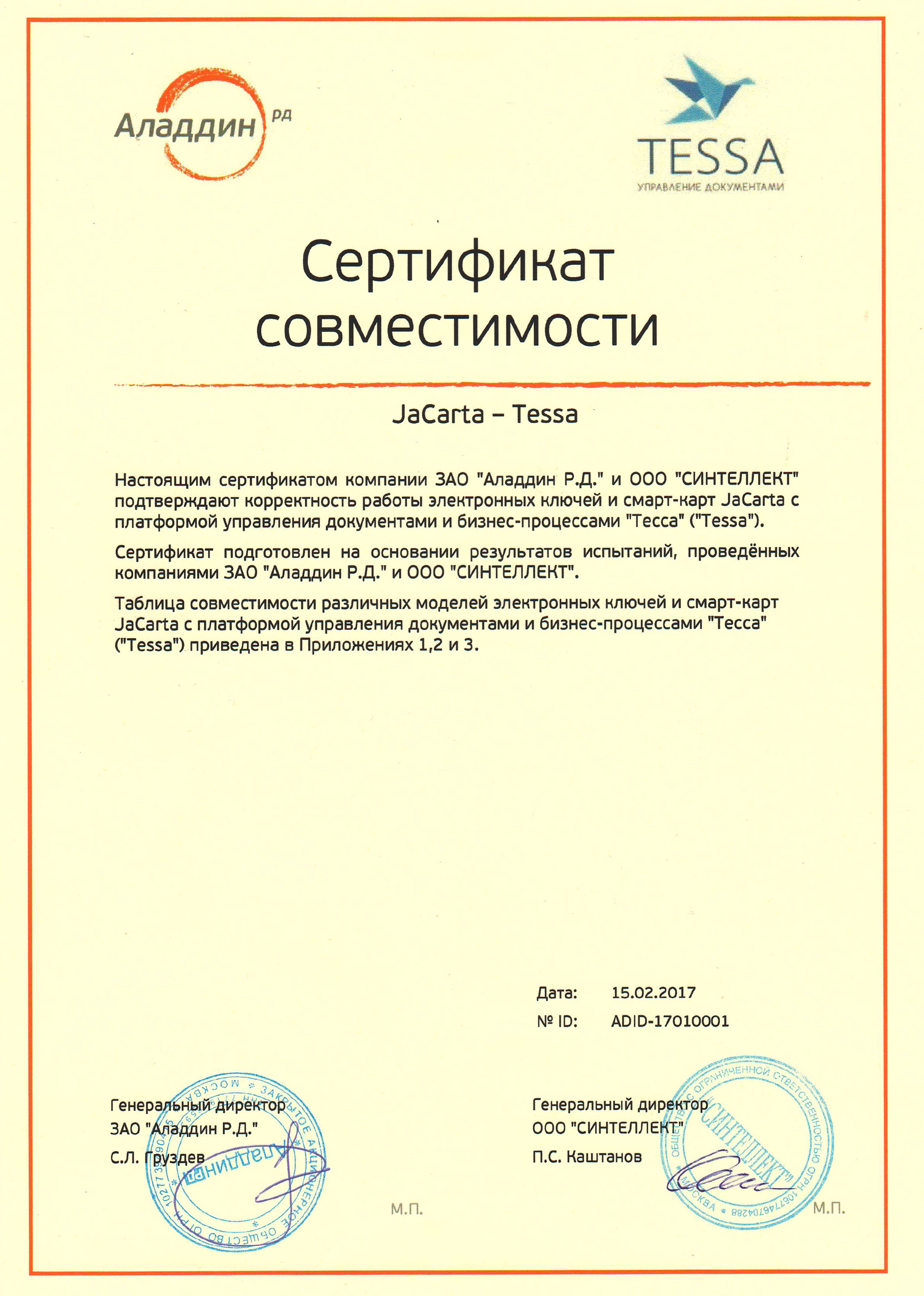 МоскваE-mail: aladdin@aladdin-rd.ruТелефон: +7 (495) 223-00-01Сертификат совместимости