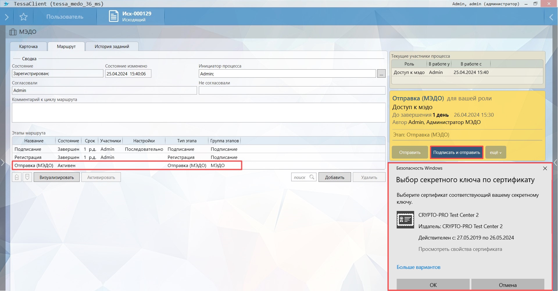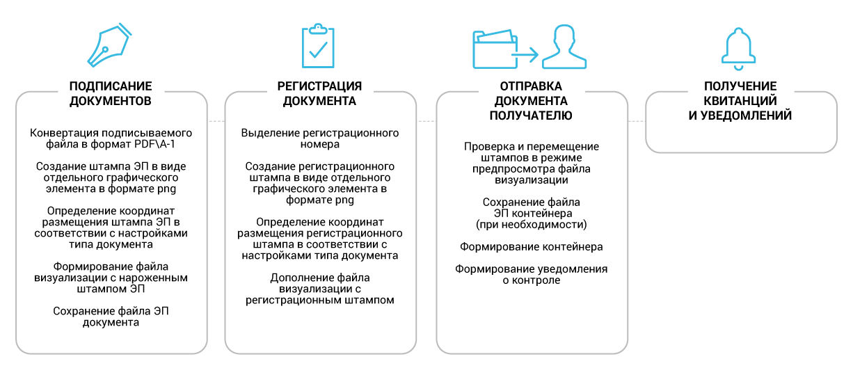 Для подписания и отправки исходящего документа модуль предусматривает наличие трех этапов в жизненном цикле документа: