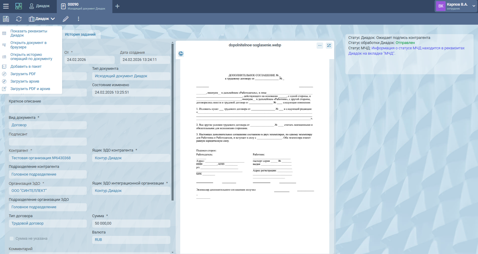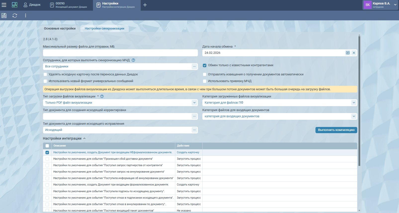 Взаимодействие с Диадоком реализовано с помощью отдельного этапа, который вы легко можете встроить в любой существующий процесс. Вы сами решаете, какую функциональность использовать и донастраивать под ваши задачи: подсистему маршрутов или конструктор бизнес-процессов.