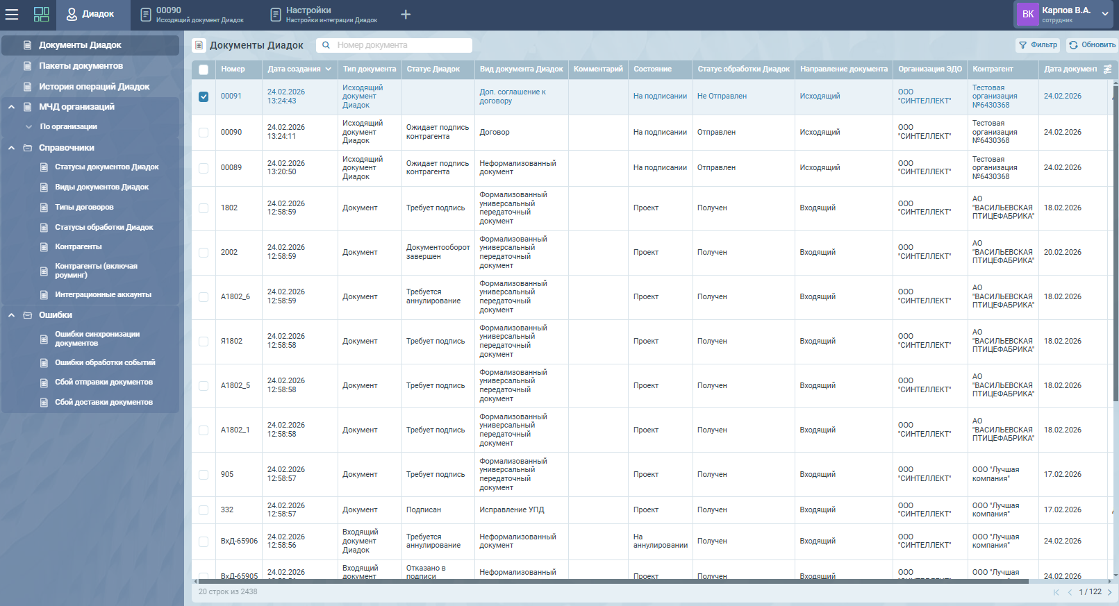 Выбирая TESSA, вы выбираете удобство: модуль предназначен для работы в «одном окне», не переключаясь между разными системами. Все взаимодействие происходит непосредственно в TESSA, без необходимости входа в личный кабинет на сайте Диадок.